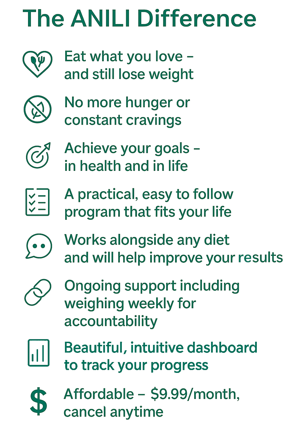 The ANILI Diet is simple, stress-free, and easy to follow — it just makes sense. No restrictions, no guilt, and the results have been amazing. It’s the only plan that truly worked for me and completely changed my life for the better.